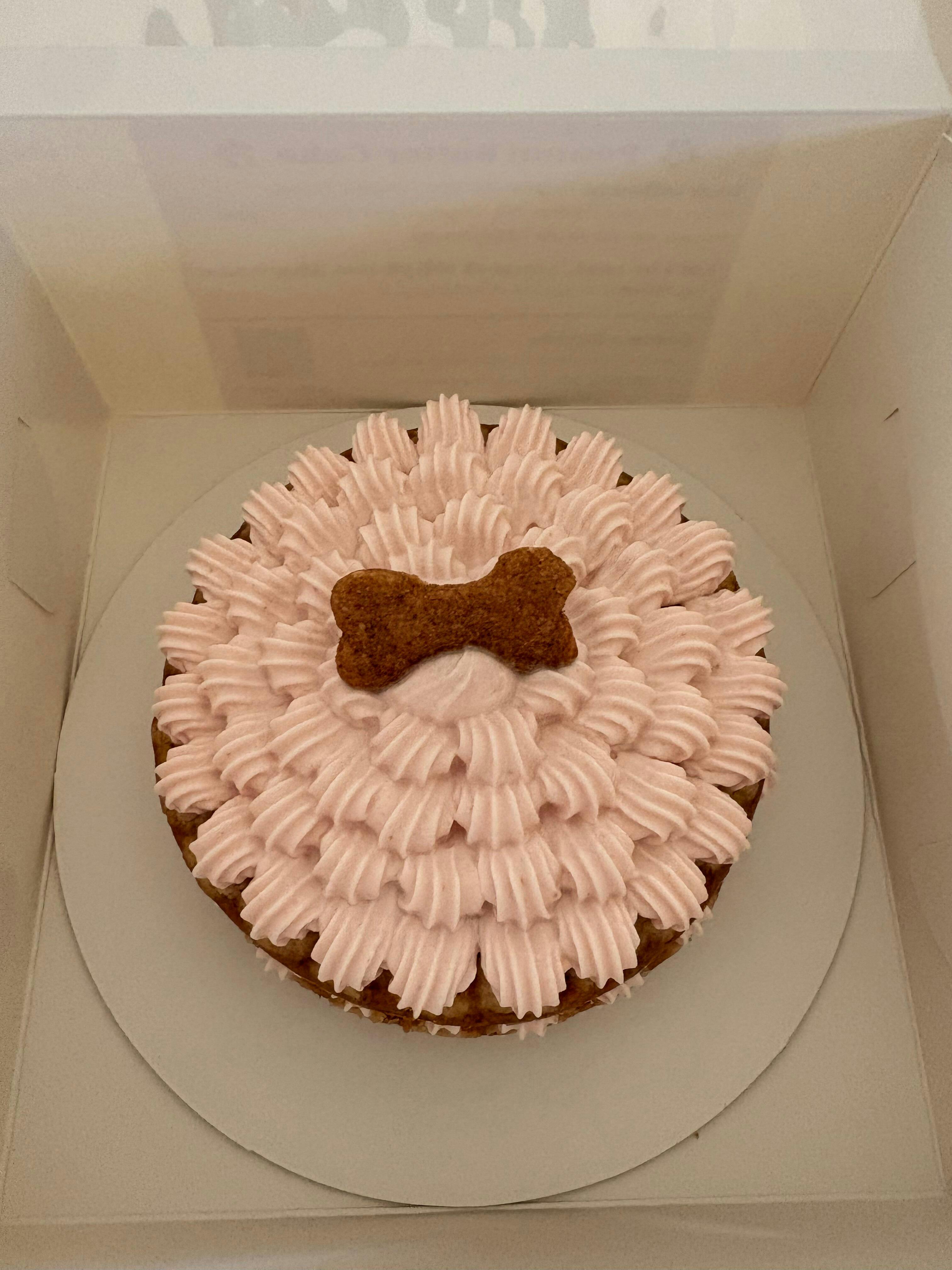 I purchased the peanut butter flavor of this cake for my dog's birthday photo session. It was the perfect size for my small dog to enjoy for a few days as a treat and she loved the flavor. Kierra also went out of her way to prepare the cake a little earlier than planned from my original scheduled pickup day and time.